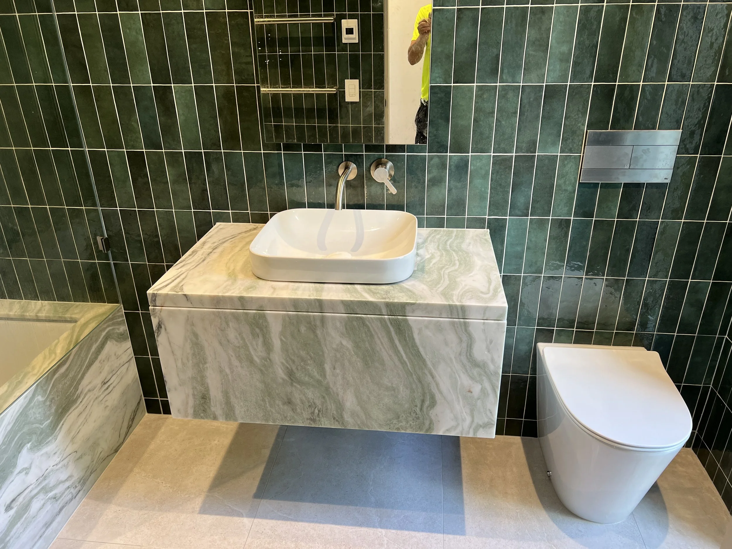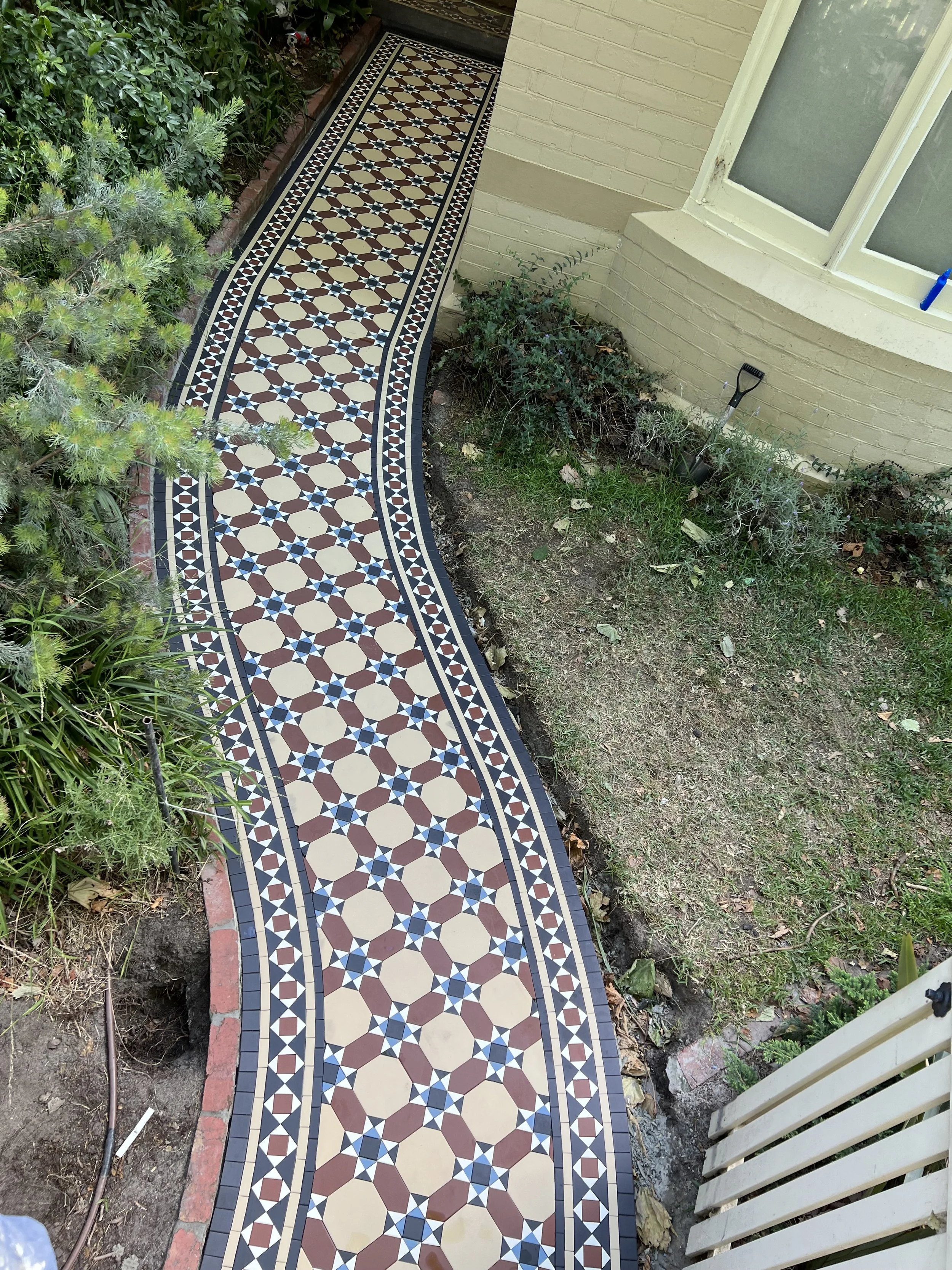 Laundry splashback Tessellated pathway Bathroom Art Deco tessellated porch Bathroom Ascot Vale Project
